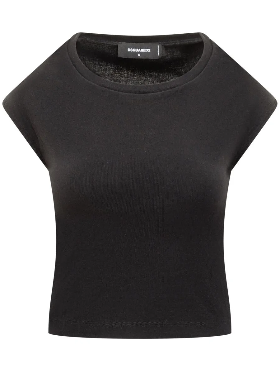 DSQUARED2 black short top in stretch jersey. Minimal short-sleeved design with round neckline. Gender: Women Material: 100% COTTON Color: Black Made in: Italy Product ID: S75GD0483D20021 900 *Import tax/duty will be calculated at checkout (If applicable)