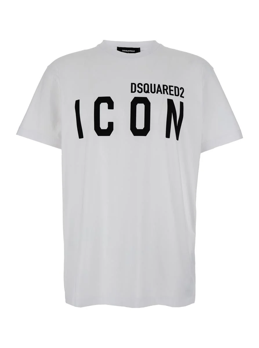 - White DSQUARED2 cotton t-shirt for man - Elastic ribbed round neckline - Short sleeves - Front contrasting color logoed print Model's height is 190 cm and he wears a size L Gender: Men Material: 100% COTTON Color: WHITE Made in: IT Product ID: S79GC0003D20020100 *Import tax/duty will be calculated at checkout (If applicable)