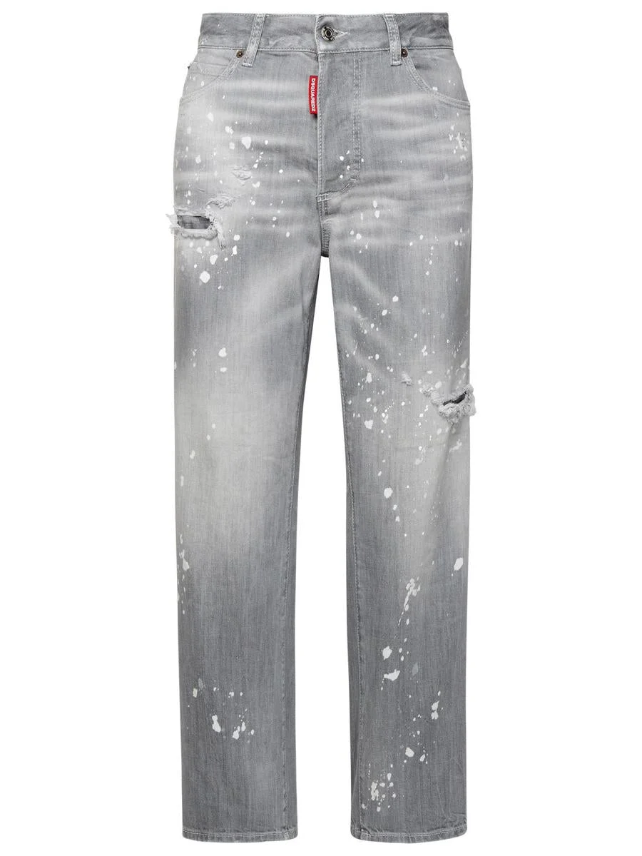 Jeans in stretch cotton denim, used wash with destroyed details and color stains, skinny fit, five pockets, belt loops at the waist, button fly, logo label on the flap, leather label with logo print and embossed lettering on the back. Gender: Women Material: 98% cotton, 2% elastane Color: GREY Made in: IT Product ID: S75LB0903 S30260852 *Import tax/duty will be calculated at checkout (If applicable)