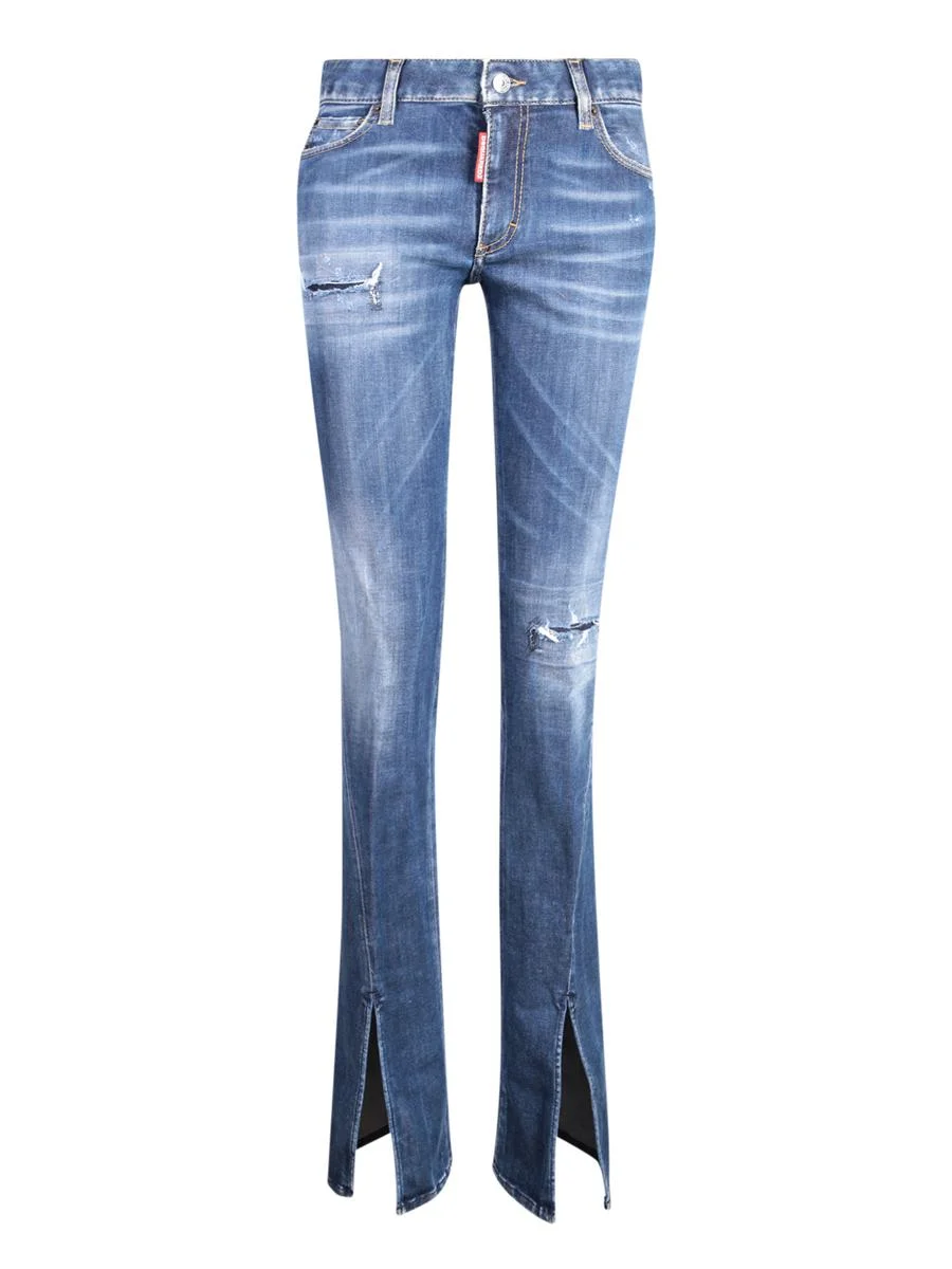 Bootcut jeans by Dsquared2 Slits on the hem. Flared. Gender: Women Material: 92% COTTON 8% ELASTANE Color: BLUE Made in: Imported Product ID: S80LA0053 S30789 470 *Import tax/duty will be calculated at checkout (If applicable)