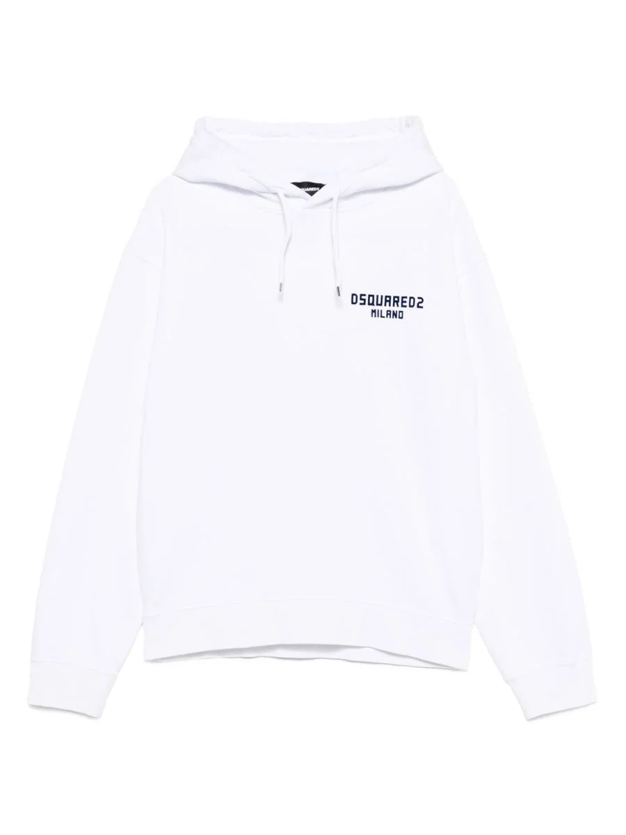 The Dsquared2 'Just Right' hoodie, with its essential, streetwear style, is made of soft cotton and combines comfort and character, thanks to the discreet logo detail that adds a touch of style - Dsquared2 - 'Just Right' hoodie - White - Cotton - Hooded neck - Long sleeves - Logo detail Gender: Men Material: .100% COTTON Color: BIANCO E BLU NAVY Made in: Italy Product ID: S74GU0890 D25015 965 *Import tax/duty will be calculated at checkout (If applicable)