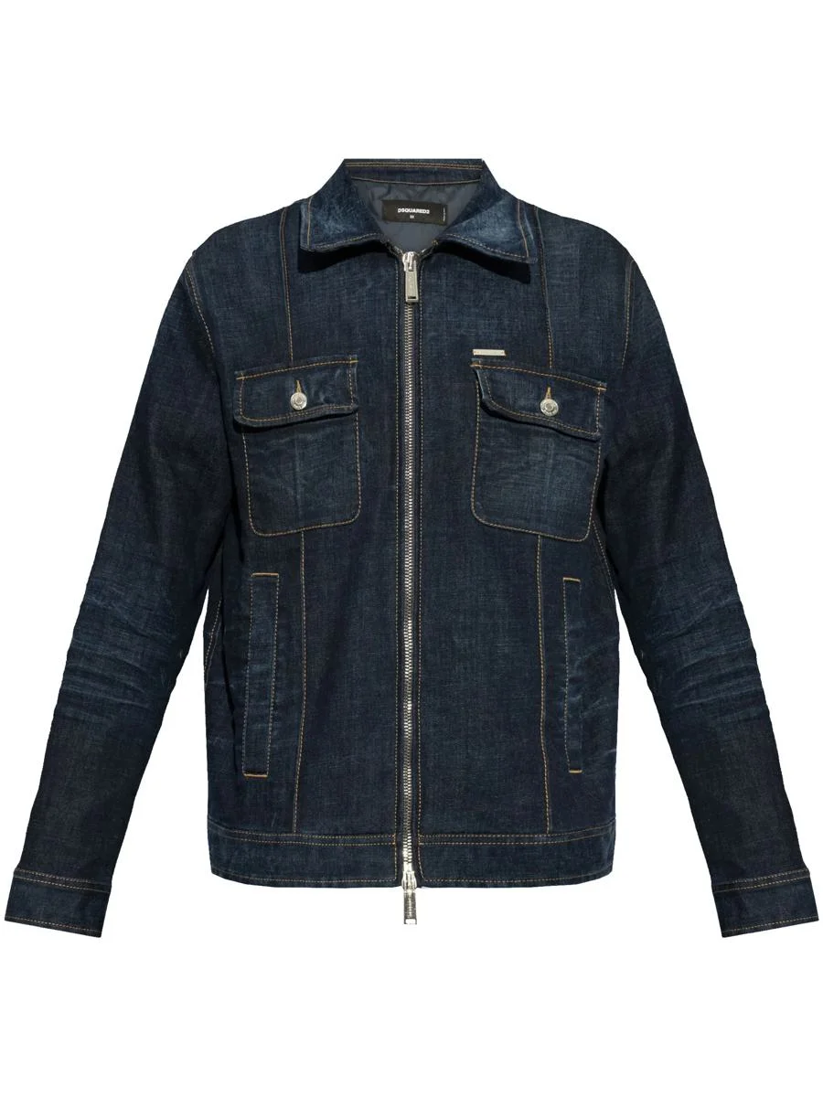 Highlights navy blue front zip fastening chest flap pockets two side slit pockets spread collar   Made in Italy.   Composition Cotton 99%, Elastane 1% Gender: Men Material: 99% COTTON 1% ELASTANE Color: NAVY BLUE Made in: Imported Product ID: S74AM1551S30664 470 NAVY BLUE *Import tax/duty will be calculated at checkout (If applicable)
