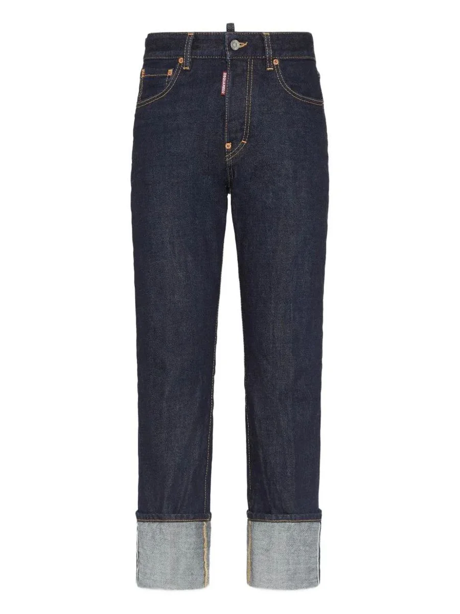 navy blue concealed fly and button fastening classic five pockets decorative stitching turn-up hem Gender: Women Material: 100% COTTON Color: NAVY BLUE Made in: Imported Product ID: S75LB1094S30833 470 NAVY BLUE *Import tax/duty will be calculated at checkout (If applicable)