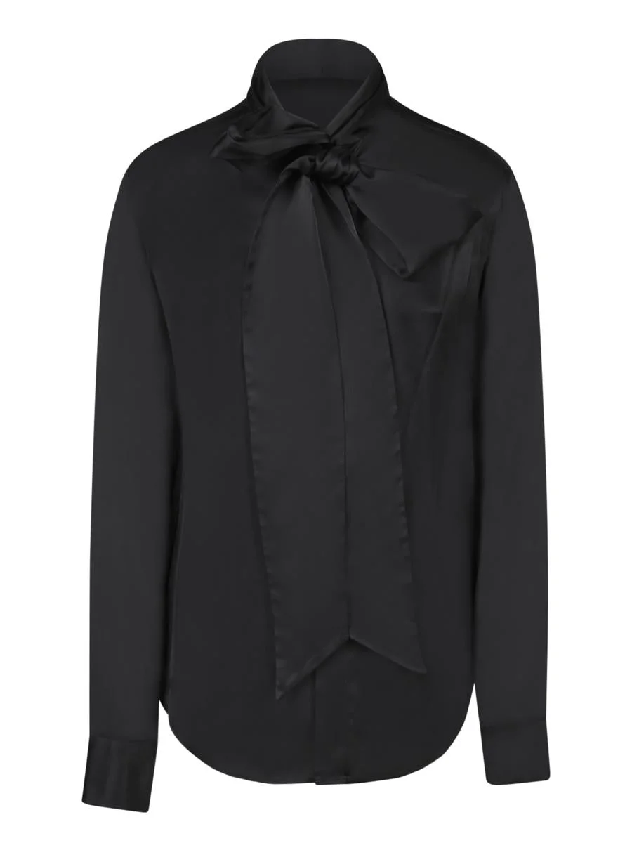 Smooth fabric shirt, classic collar, long sleeves, bow detail at the neck.. Exclusive DSQUARED2 matte black shirt, featuring an elegant neck bow that adds a touch of sophistication. Perfect for formal evenings or as a standout piece for the office Gender: Women Material: 100% VISCOSE Color: Black Made in: Imported Product ID: S75DL0893 S78302 900 *Import tax/duty will be calculated at checkout (If applicable)