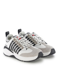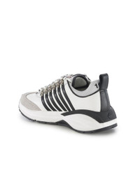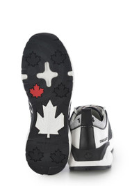 Sneakers Dsquared2 made of White leather. Suede leather inserts. Black leather details. Round toe. "Maple Leaf" logo on the tongue. Lace-up. Contrasting Black "Dsquared2" lettering logo on the side. Padded ankle. Lined interior. Pull tab on the back. Tone-on-tone logo on the back. Rubber sole. Gender: Men Material: LEATHER Color: WHITE Made in: IMPORTED Product ID: SNM037701507697-M072 *Import tax/duty will be calculated at checkout (If applicable)
