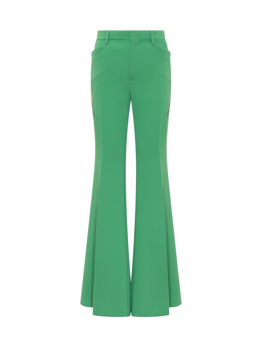 Long flared pants. Button, hook and zipper closure. Belt loops. Four pockets. Side cut-outs. Gender: Women Material: 100% POLYESTER Color: GREEN Made in: IT Product ID: S72KA1181S60567 666 *Import tax/duty will be calculated at checkout (If applicable)