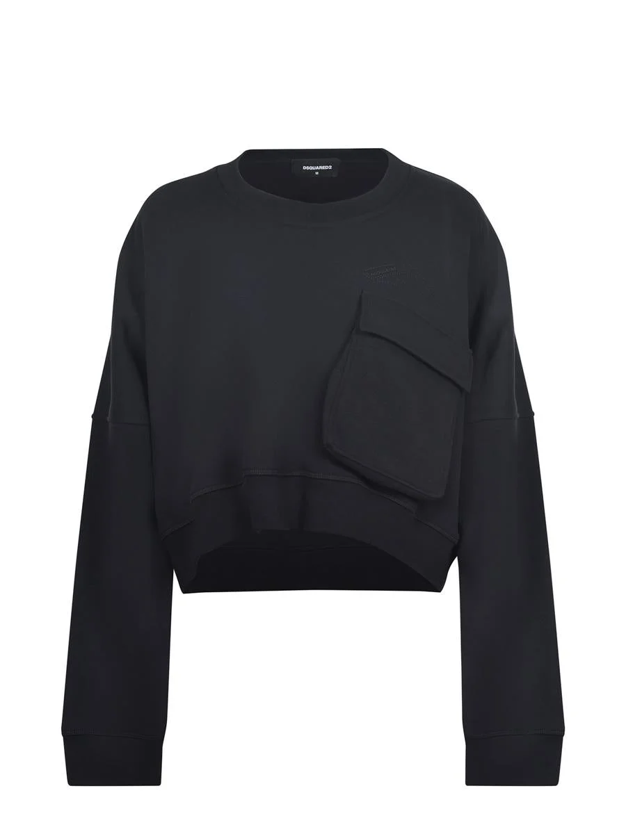 Dsquared2 sweatshirt made of black cotton blend. Ribbed crew neck. Long sleeves. Ribbed cuffs. Logo lettering and 'Icon' text embroidered in tone-on-tone on the chest. Chest pocket with flap and buttons. Gender: Women Material: COTTON Color: Black Made in: Italy Product ID: S80GU0115D25007-900 *Import tax/duty will be calculated at checkout (If applicable)