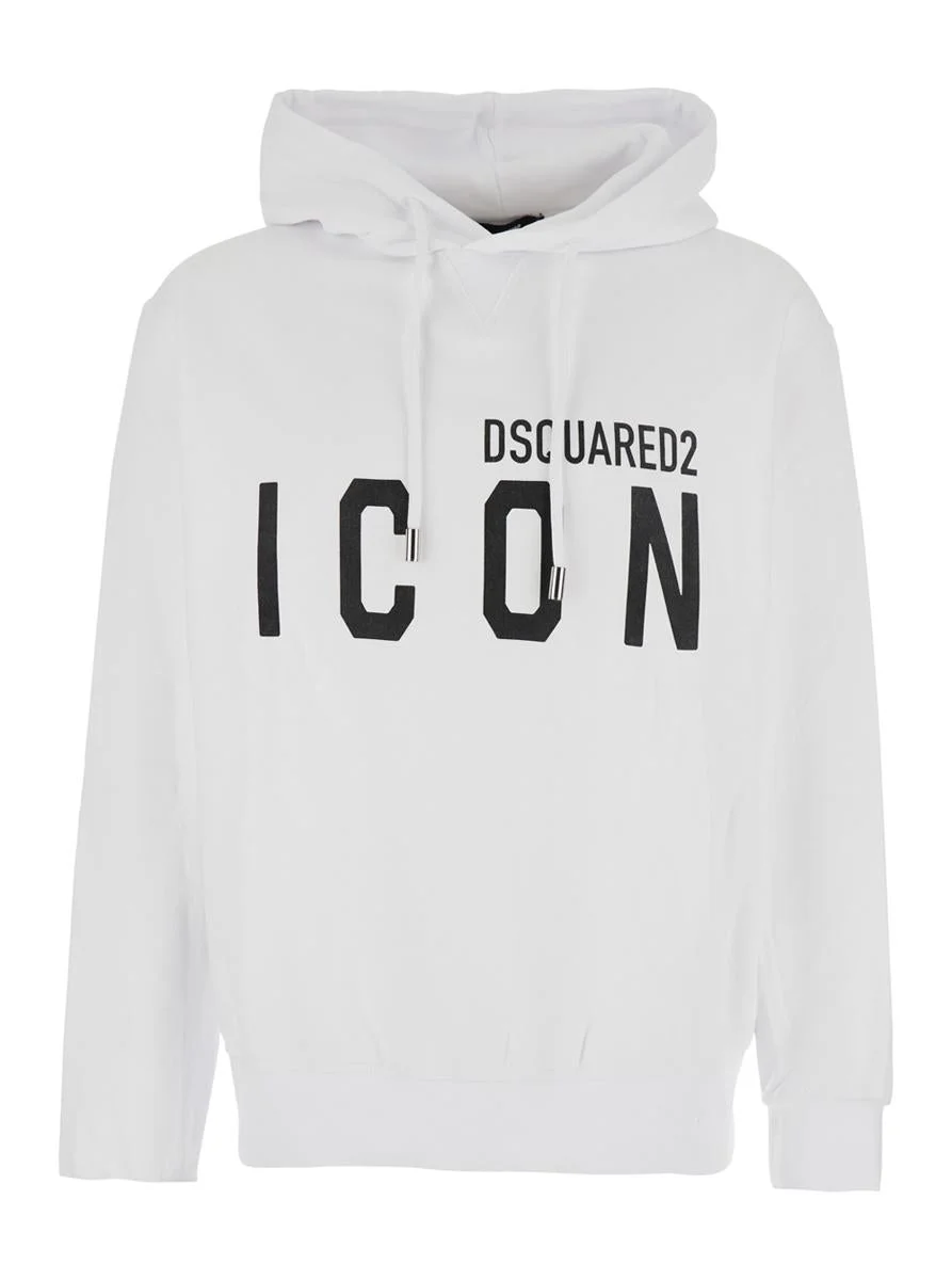 - White DSQUARED2 cotton hoodie for man - Hood with drawstring - Long sleeves - Elastic ribbed trims - Front contrasting color logo Model's height is 190 cm and he wears a size L Gender: Men Material: 100% COTTON Color: WHITE Made in: IT Product ID: S79GU0003D25015100 *Import tax/duty will be calculated at checkout (If applicable)