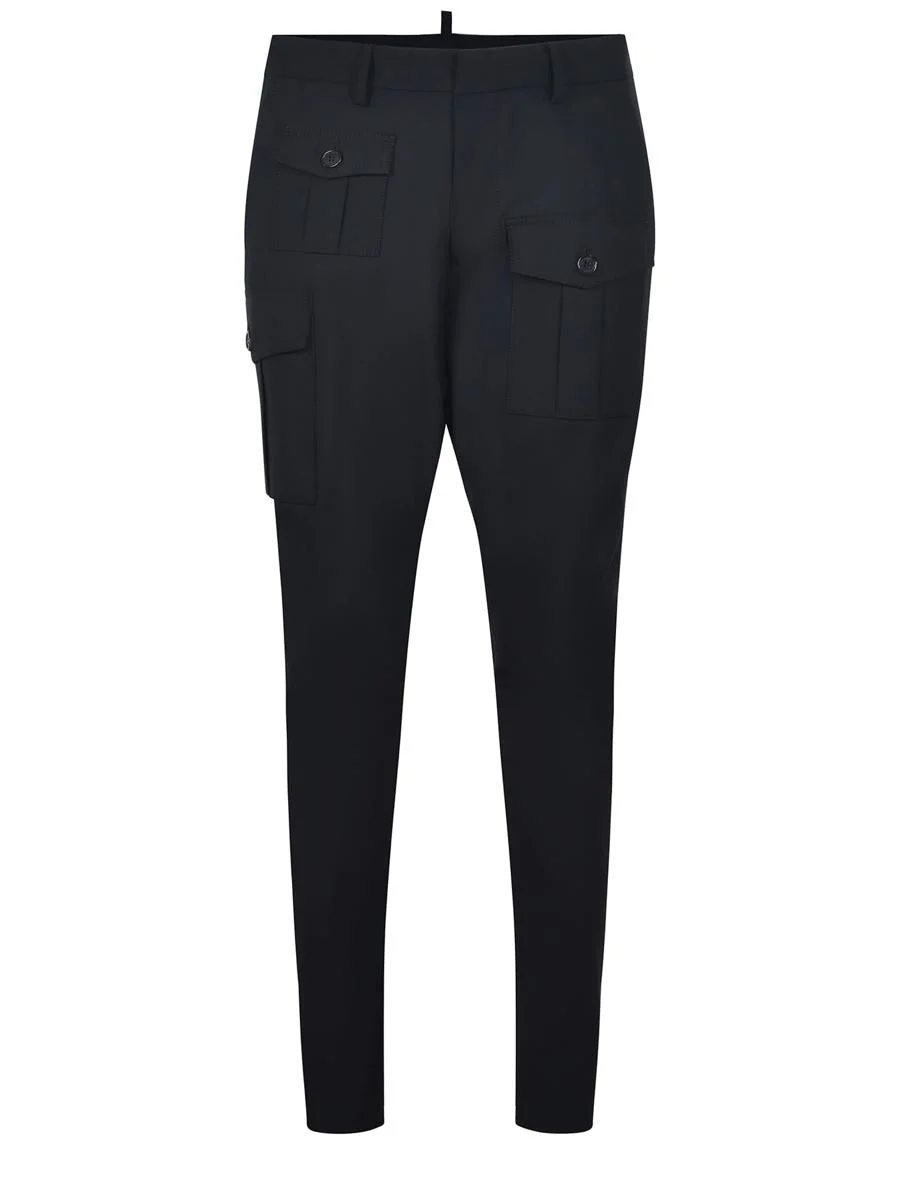 Trousers Dsquared2 "Sexy Cargo" made of fresh stretch wool in Black. Belt loops. Concealed button closure. Side pockets. Cargo pockets with flap and button. "Dsquared2" metal logo patch on the back. Welt pockets with button on the back. Regular fit. Gender: Men Material: LANA STRETCH Color: Black Made in: IT Product ID: S74KB0930S40320-900 *Import tax/duty will be calculated at checkout (If applicable)