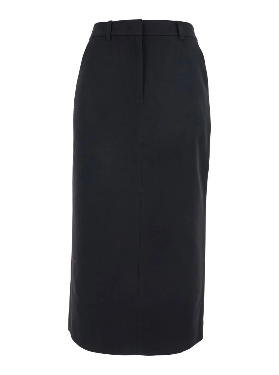 Dunst Black Long Skirt With Belt Loops And Rear Single Slit In Wool Blend Woman