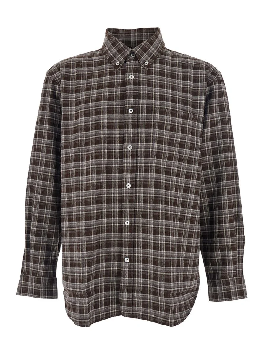 Dunst Brown Checkered Shirt With Front Logo Patch In Flannel Man