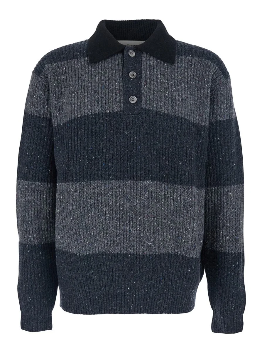 Dunst Grey Polo Shirt With Ribbed Design And Striped Motif In Wool Man