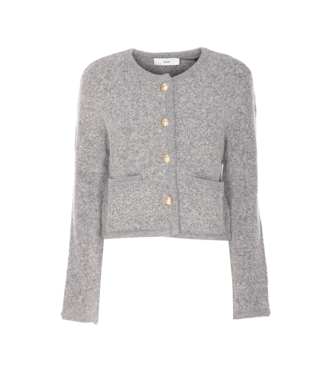 Dunst Grey Collarless Knit Jacket, Buttons Closure, Crewneck, Pockets On The Front, Boucle' Effect, US SIZE Gender: Women Material: 28%ACRYLIC, 26%ALPACA, 23%WOOL,20%NYLON, 3%POLYURETHANE, 100%WOOL Color: GREY Made in: Imported Product ID: UDJA5D221G2MELANGE GREY *Import tax/duty will be calculated at checkout (If applicable)