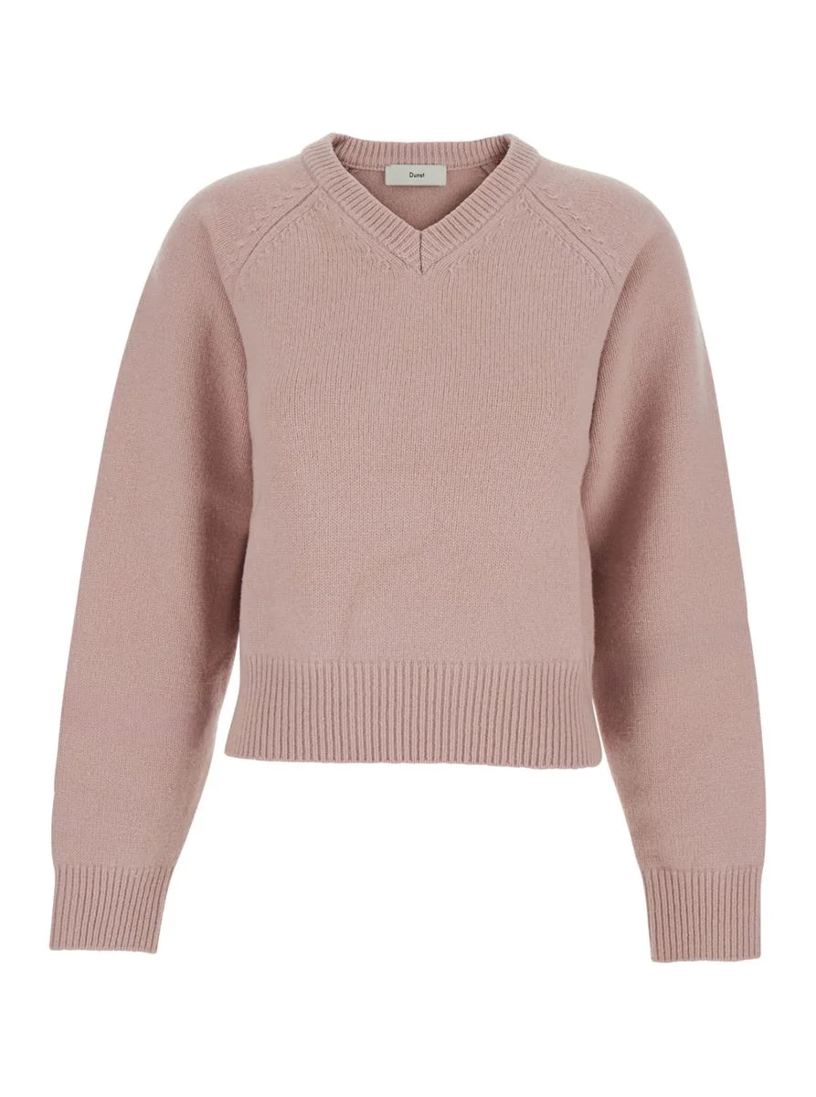 Dunst Pink Sweater With V Neck And Ribbed Trims In Wool Woman