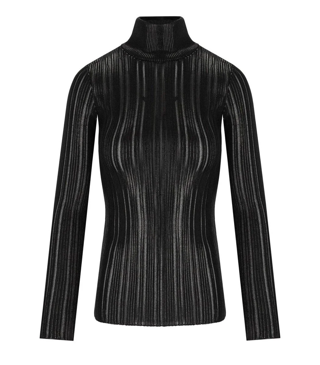 Top by Elisabetta Franchi made from black technical fabric with a metallic finish and semi-sheer ribbed texture. High neckline. Slim fit. Composition: 100% polyester. Gender: Women Material: TECHNICAL FABRIC Color: Black Made in: Italy Product ID: MK17Q58E2-110 *Import tax/duty will be calculated at checkout (If applicable)