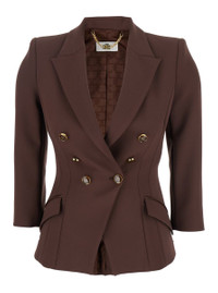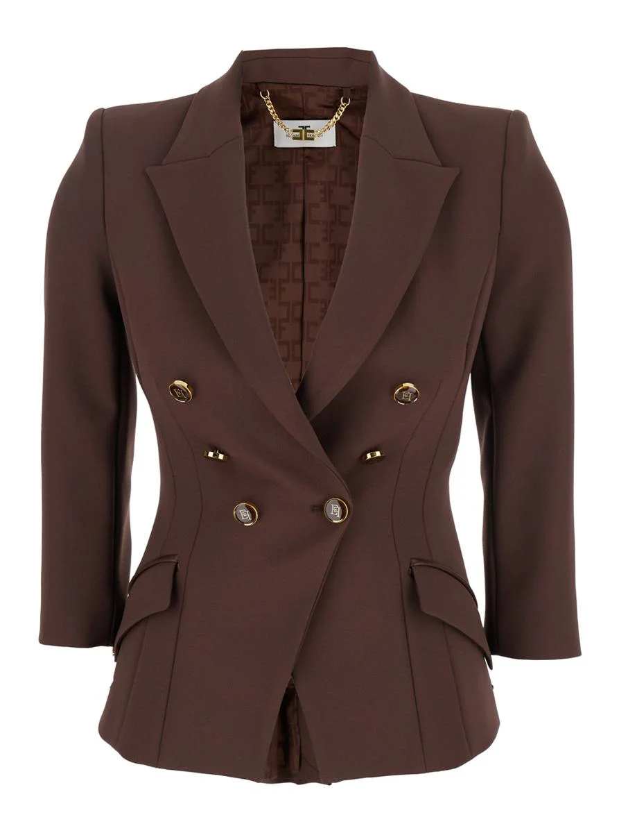 Elisabetta Franchi Brown Jacket With Classic Lapels And Double-Breasted Fastening In Fabric Woman