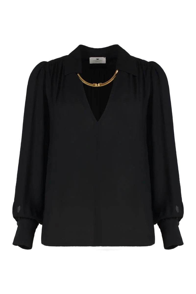 Georgette blouse Gold-tone metal necklace Decorative gathering 100% Viscose Gender: Women Material: VISCOSE Color: Black Made in: Italy Product ID: CA12356E2_110 *Import tax/duty will be calculated at checkout (If applicable)