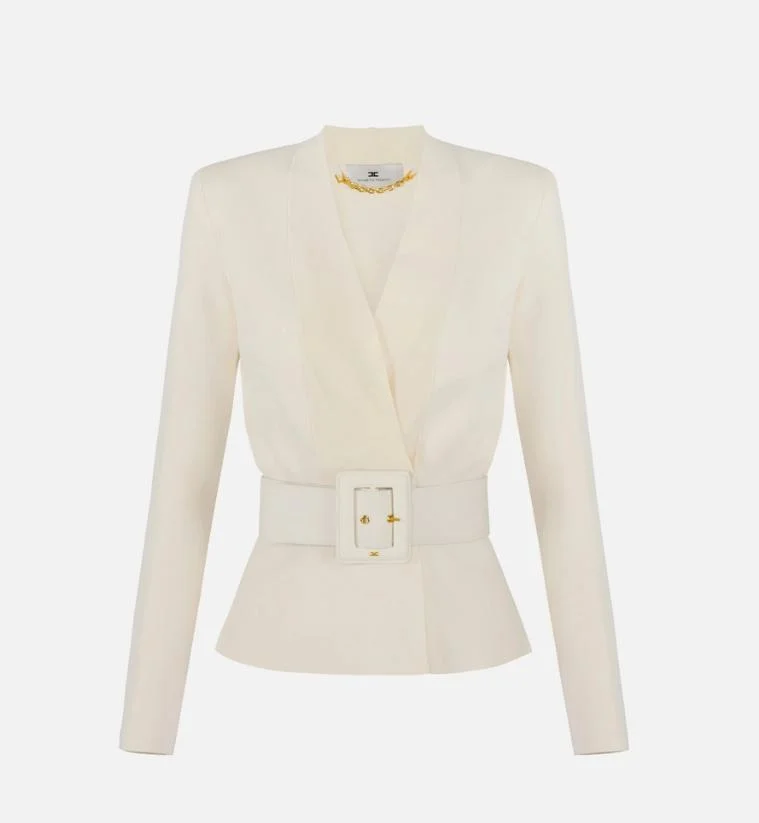 Knit jacket with a textured stitch. The blazer features structured shoulders and a lapel made of shiny viscose, creating interesting texture contrasts. The matching belt accentuates the peplum at the hem, creating a bold and defined silhouette. Slim fit. Gender: Women Material: 60%VISCOSE23%POLYESTER17&POLYAMIDE Color: Beige Made in: Imported Product ID: MK48S57E2DZ9 Milk *Import tax/duty will be calculated at checkout (If applicable)