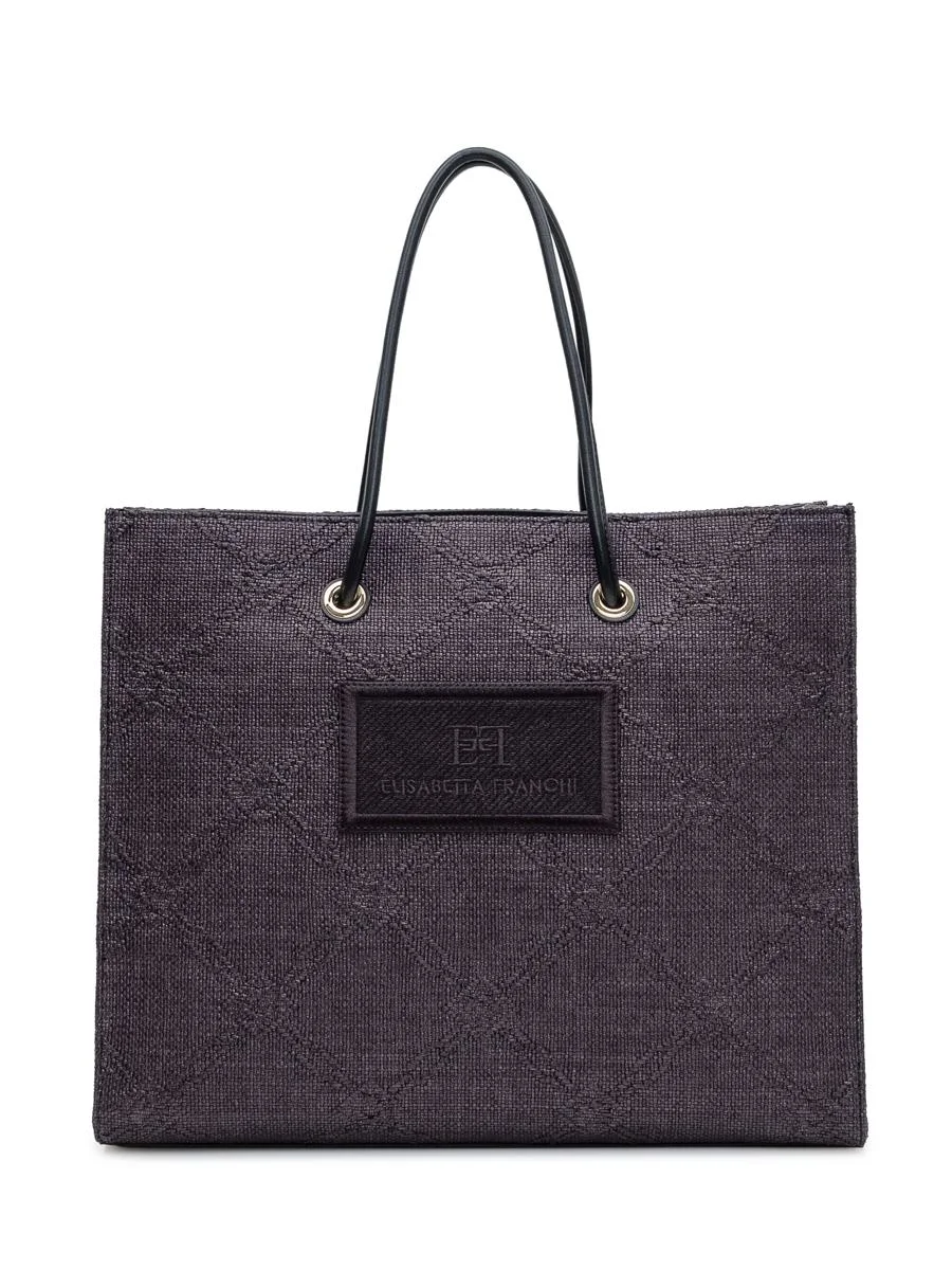 Elisabetta Franchi Large Tote In Jacquard Raffia