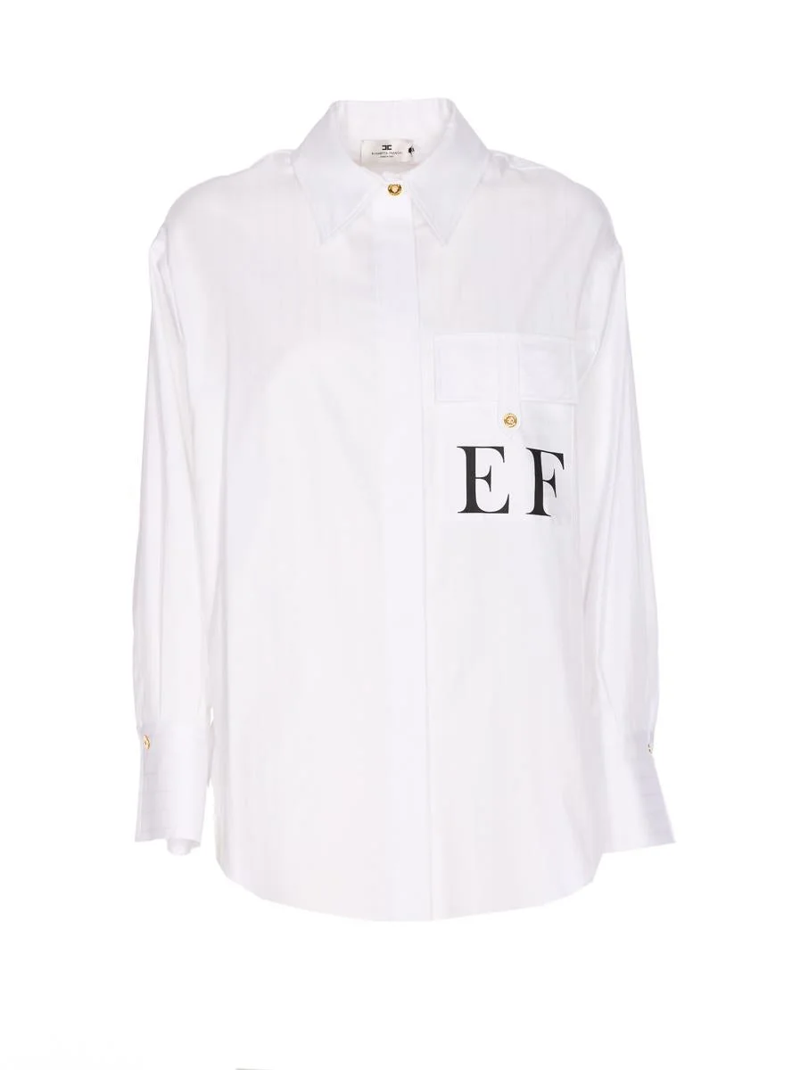 Elisabetta Franchi White And Black Shirt, Frontal Logo, Frontal Pocket, Light Striped, EU SIZE (IT) Gender: Women Material: 100%COTTON Color: WHITE Made in: Italy Product ID: CA12156E2100 *Import tax/duty will be calculated at checkout (If applicable)