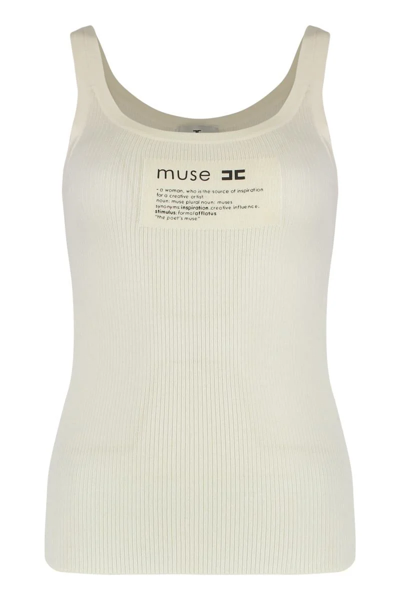 Sleeveless top in cotton Women's tank top in black color, characterized by a simple and modern design. The front part is decorated with contrasting print. 100% Cotton Gender: Women Material: COTTON Color: WHITE Made in: Italy Product ID: TK63B57E2_DZ9 *Import tax/duty will be calculated at checkout (If applicable)