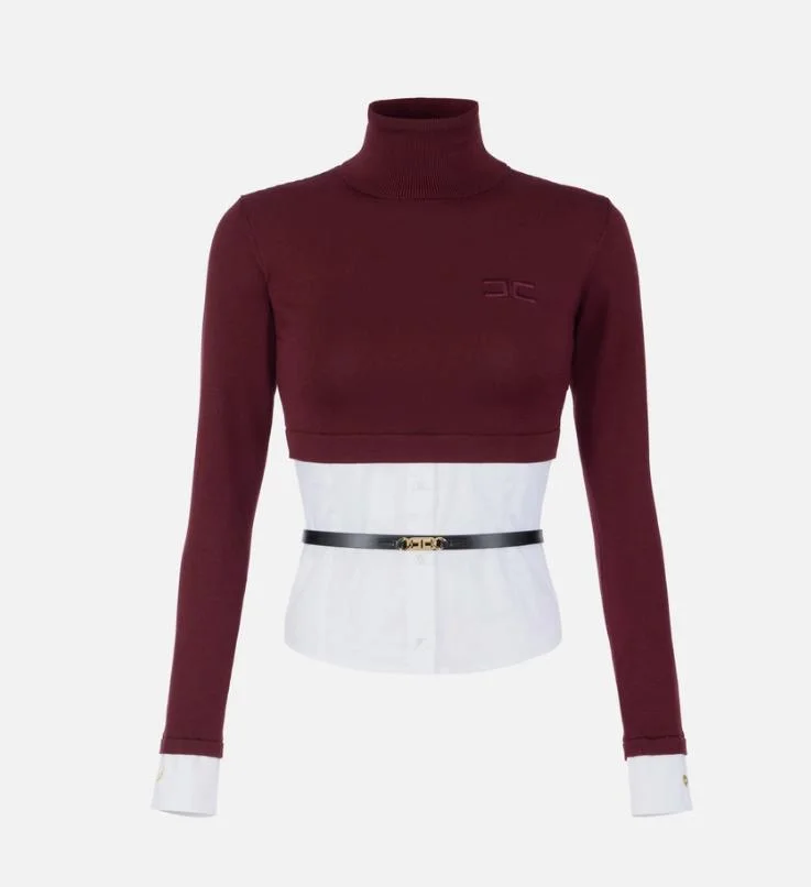 Viscose sweater with cotton poplin bottom to recreate the effect of a shirt. With turtleneck and long sleeves with cuffs, it has an embroidered logo on one side. The logo belt gives a studied contrast. Tight fit. Gender: Women Material: 72%VISCOSE28%POLYESTER Color: Red Made in: Italy Product ID: MK14T56E2CM4 Rouge Noir/Bianco *Import tax/duty will be calculated at checkout (If applicable)