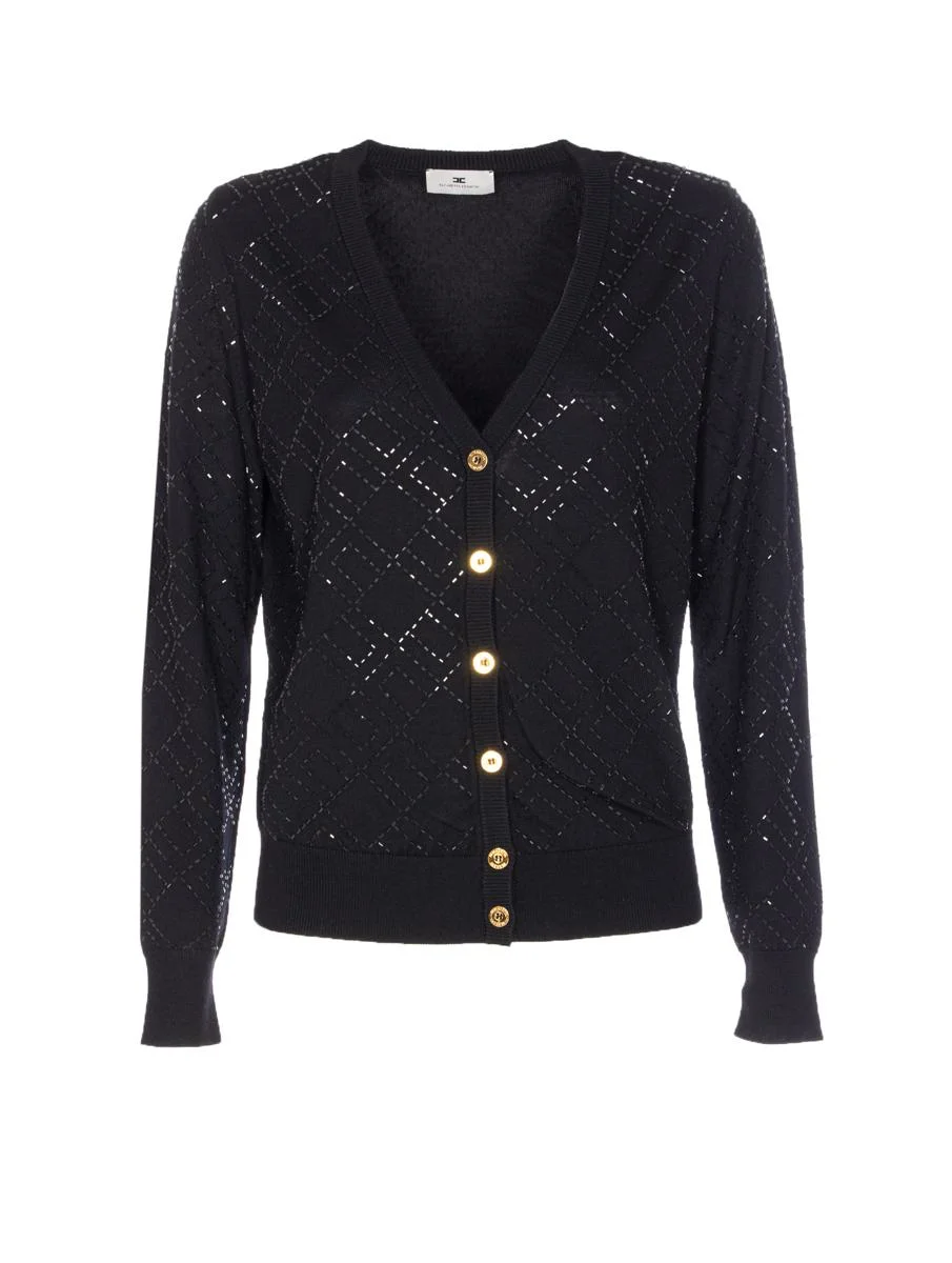 Elisabetta Franchi Black Cardigan With Buttons Closure, V-Neck, Long Sleeves, EU SIZE (IT) Gender: Women Material: 100% WOOL Color: Black Made in: Italy Product ID: MK26B56E2188 *Import tax/duty will be calculated at checkout (If applicable)