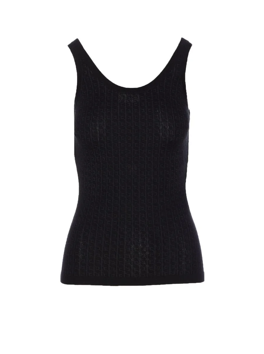 Elisabetta Franchi Black Top, Sleeveless, All Over Print Logo, EU SIZE (IT) Gender: Women Material: 52%VISCOSE, 48%VIRGIN WOOL Color: Black Made in: Italy Product ID: TK58S56E2110 *Import tax/duty will be calculated at checkout (If applicable)