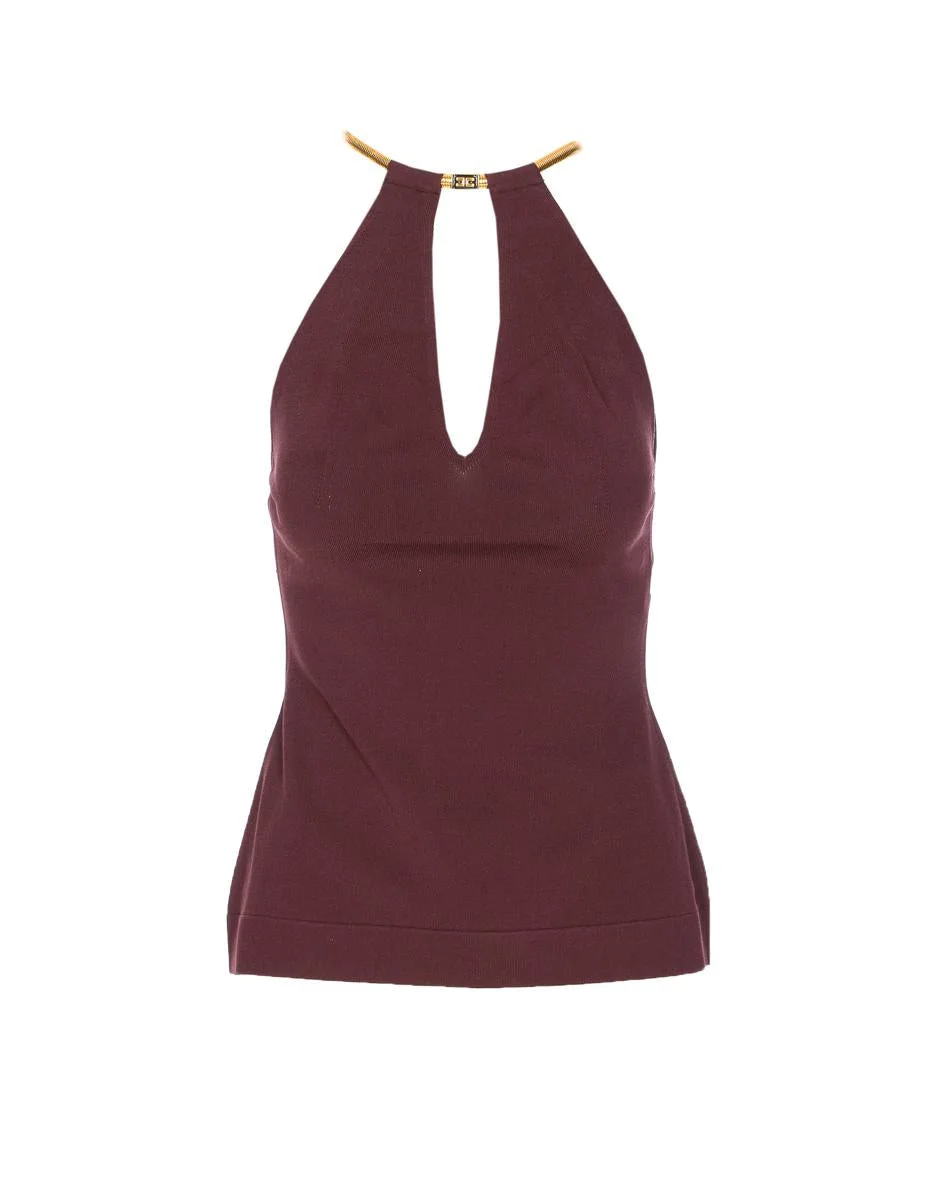 Elisabetta Franchi Bordeaux Top, Necklace With Plaque Logo Detail, Cut Out Detail On The Front, Sleeveless, EU SIZE (IT) Gender: Women Material: 83%VISCOSE, 17%POLYESTER Color: RED Made in: Italy Product ID: TK55S56E2EA4 *Import tax/duty will be calculated at checkout (If applicable)