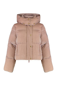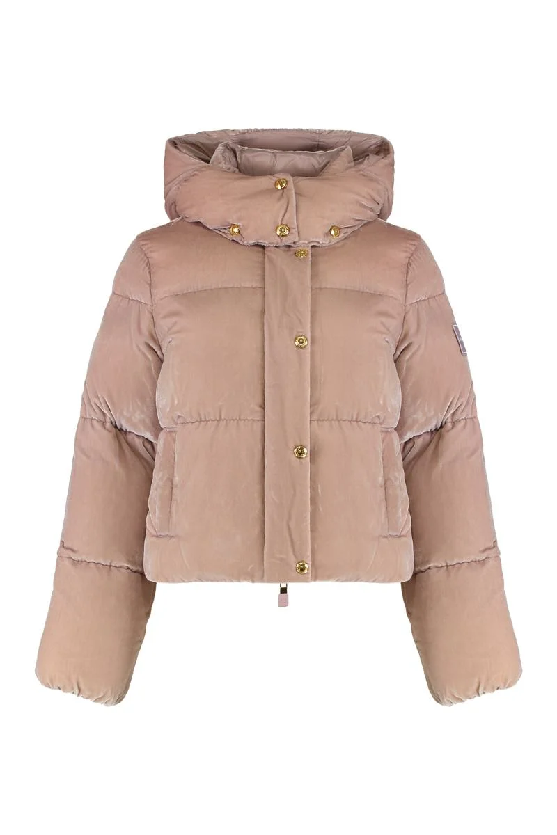 Velvet puffer jacket Cropped velvet puffer jacket with a regular fit. Features a funnel neck with a removable hood, welt pockets, buttoned flap closure, and zip. The lining in sail cloth ensures protection and comfort. The logo patch on one sleeve completes the piece. Ideal for colder seasons, it can be easily paired with a variety of outfits. 100% Cotton Gender: Women Material: COTTON Color: PINK Made in: Italy Product ID: PI82D56E2_EA6 *Import tax/duty will be calculated at checkout (If applicable)