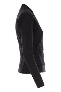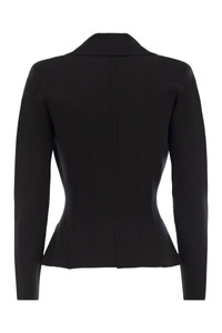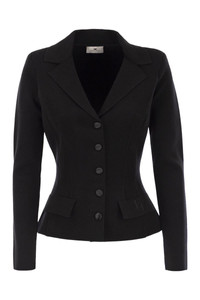 Single-breasted jacket in wool fabric with a slim fit. The blazer has structured shoulders, classic lapels and patch pockets. It stands out for its tone-on-tone details that add definition, such as the corset-inspired ribbing that enhances the fitted silhouette and the logo embroidery on one pocket flap. - Padded shoulder pads - Satin-covered buttons - Patch pockets - Embroidered logo detail - Slim fit DESIGNER ID: MK16S56E2 110 Gender: Women Material: 70% WOOL, 20% POLYAMIDE, 10% POLYESTER Color: Black Made in: Imported Product ID: MK16S56E2 110 *Import tax/duty will be calculated at checkout (If applicable)