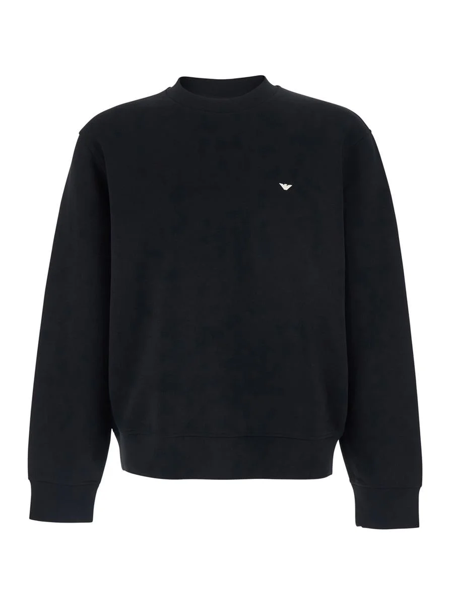 Emporio Armani Black Crewneck Sweatshirt With Logo Embroidery On The Front In Cotton Blend Man