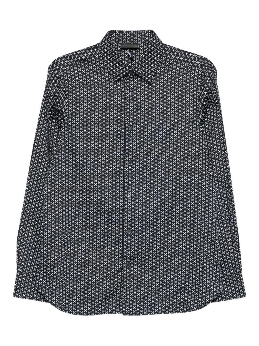 PRINTED-PATTERN STRETCH COTTON SHIRT