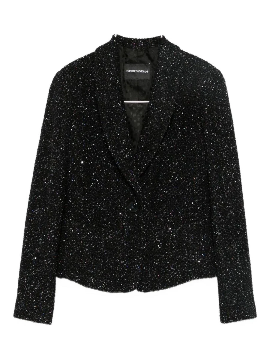 black and grey sequin embellishment notched lapel single button fastening long sleeves straight hem Gender: Women Material: 4% VIRGIN WOOL, 3% POLYAMIDE, 33% COTTON, 3% OTHER FIBRES, 35% POLYESTER, 16% ACRYLIC, 6% WOOL Color: Black Made in: Imported Product ID: EW000115TE16661FC050 *Import tax/duty will be calculated at checkout (If applicable)