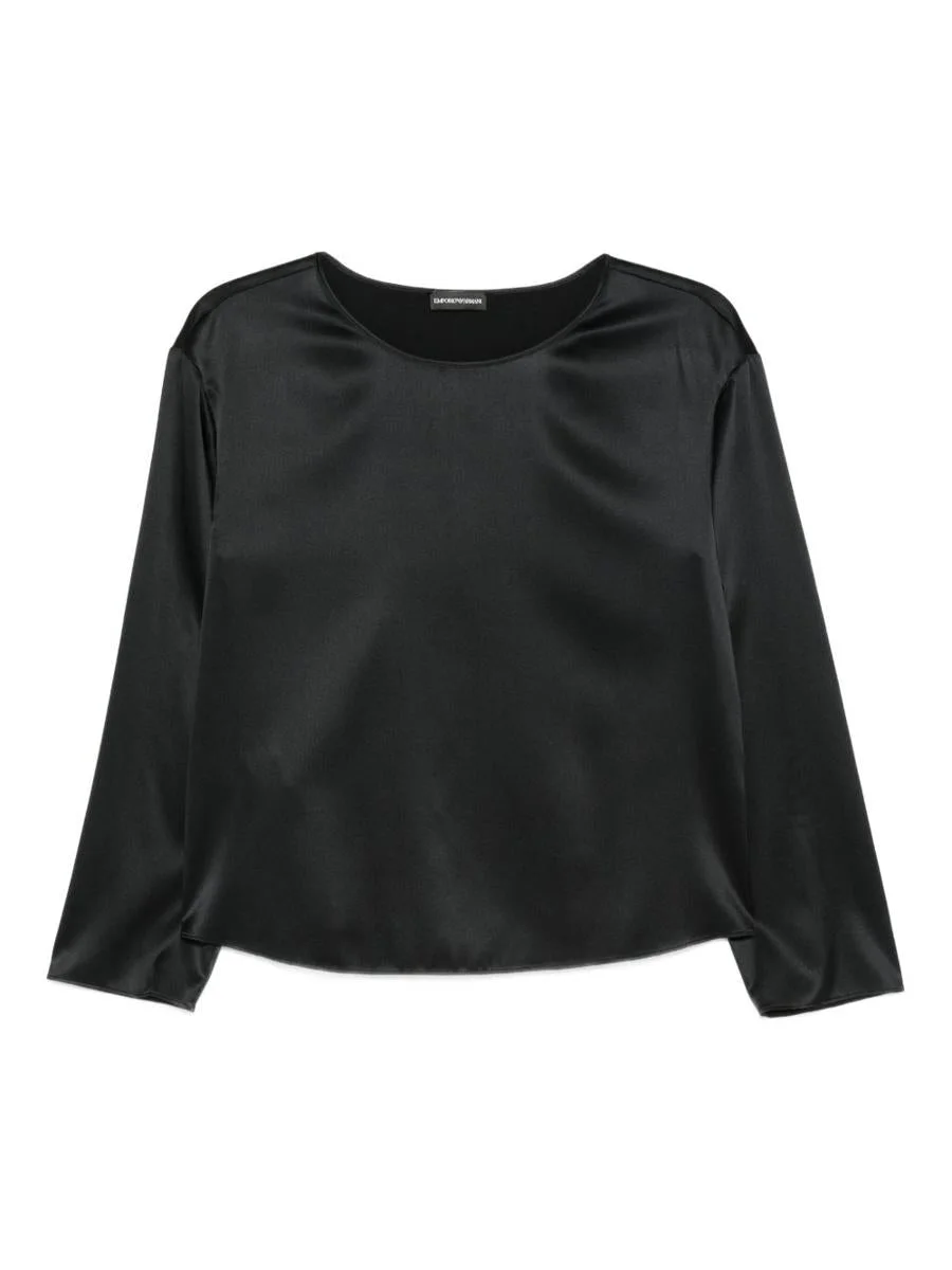 black satin texture three-quarter sleeves round neck Gender: Women Material: SILK 94%, ELASTANE 6% Color: Black Made in: Imported Product ID: EW002198AF17300UC001 *Import tax/duty will be calculated at checkout (If applicable)