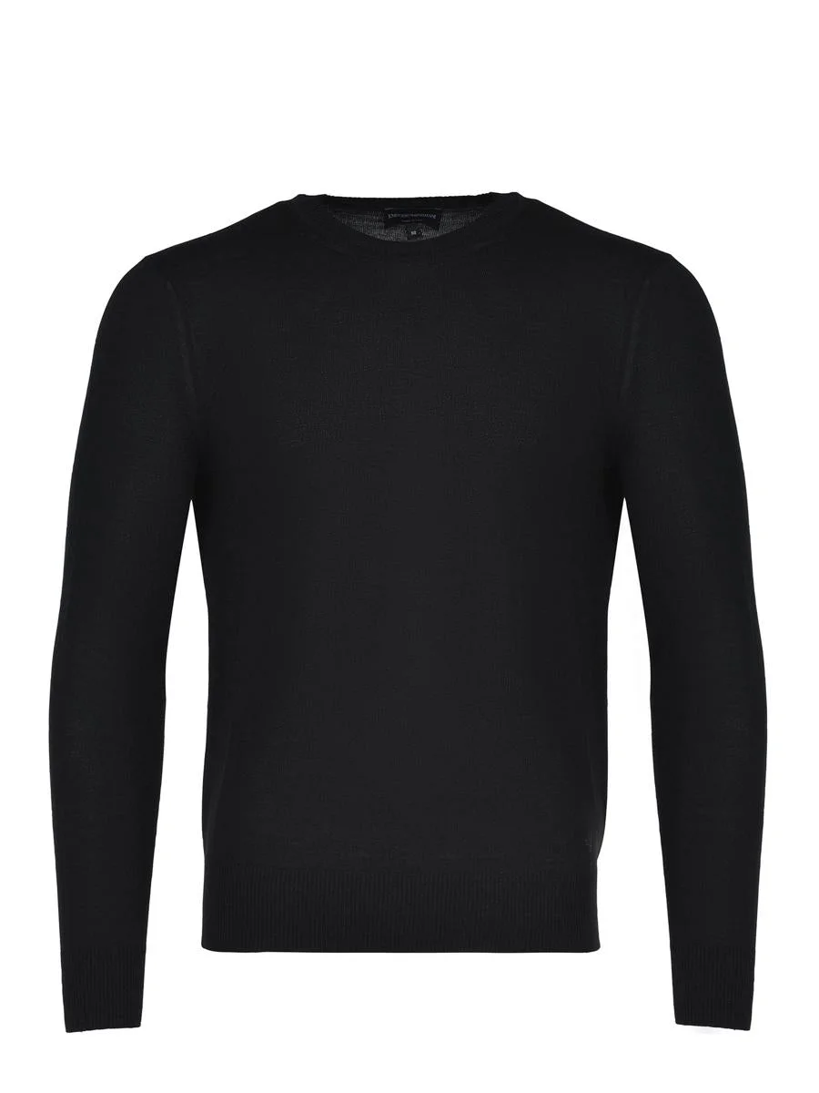 Emporio Armani sweater made from black wool. Ribbed crew neck. Long sleeves. Tone-on-tone monogram logo with a rubberized effect on the front hem. Ribbed cuffs and hem. Gender: Men Material: WOOL Color: Black Made in: Italy Product ID: 8N1M421M67Z-0999 *Import tax/duty will be calculated at checkout (If applicable)