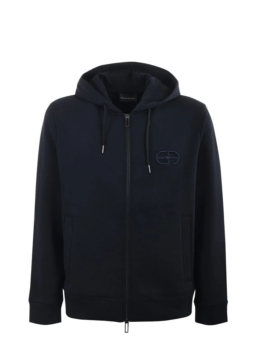 Double-jersey zip-up hooded sweatshirt with embossed, embroidered EA logo