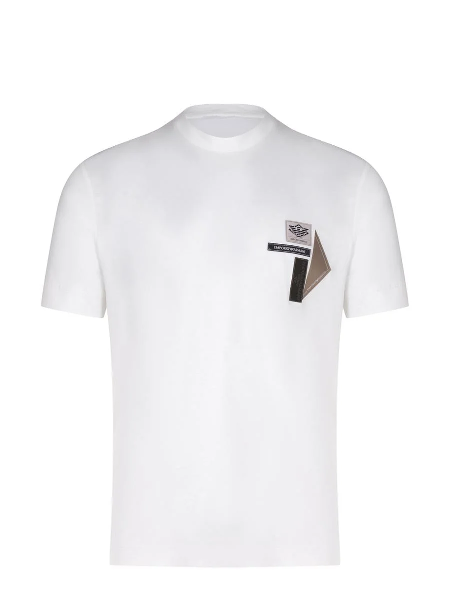 Emporio Armani T-shirt made of white cotton blend. Crew neck. Short sleeves. Contrasting embroidered logo patch on the chest. Gender: Men Material: COTTON Color: WHITE Made in: Imported Product ID: EM002959AF18312-U0003 *Import tax/duty will be calculated at checkout (If applicable)