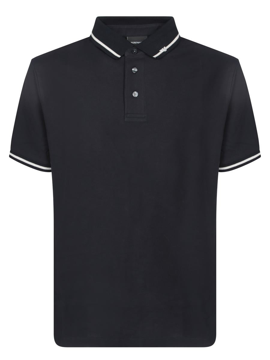 Short sleeve polo. White contrast collar and sleeve edge. Eagle logo on the chest.. Refinement meets sportiness in this deep blue Emporio Armani polo. Featuring distinctive details such as the white contrast collar and sleeve edges, and the iconic eagle logo for a touch of exclusivity Gender: Men Material: COTTON 100% Color: BLUE Made in: Imported Product ID: EM003003 AF10497 UB118 *Import tax/duty will be calculated at checkout (If applicable)