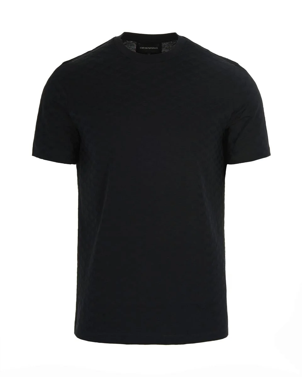 Men's cotton t-shirt by Emporio Armani in navy blue featuring a round neckline and short sleeves. It showcases an all-over monogram design and offers a regular fit. Gender: Men Material: 100% COTTON; Color: BLUE Made in: VN Product ID: 8N1TL71JHWZ0920 *Import tax/duty will be calculated at checkout (If applicable)