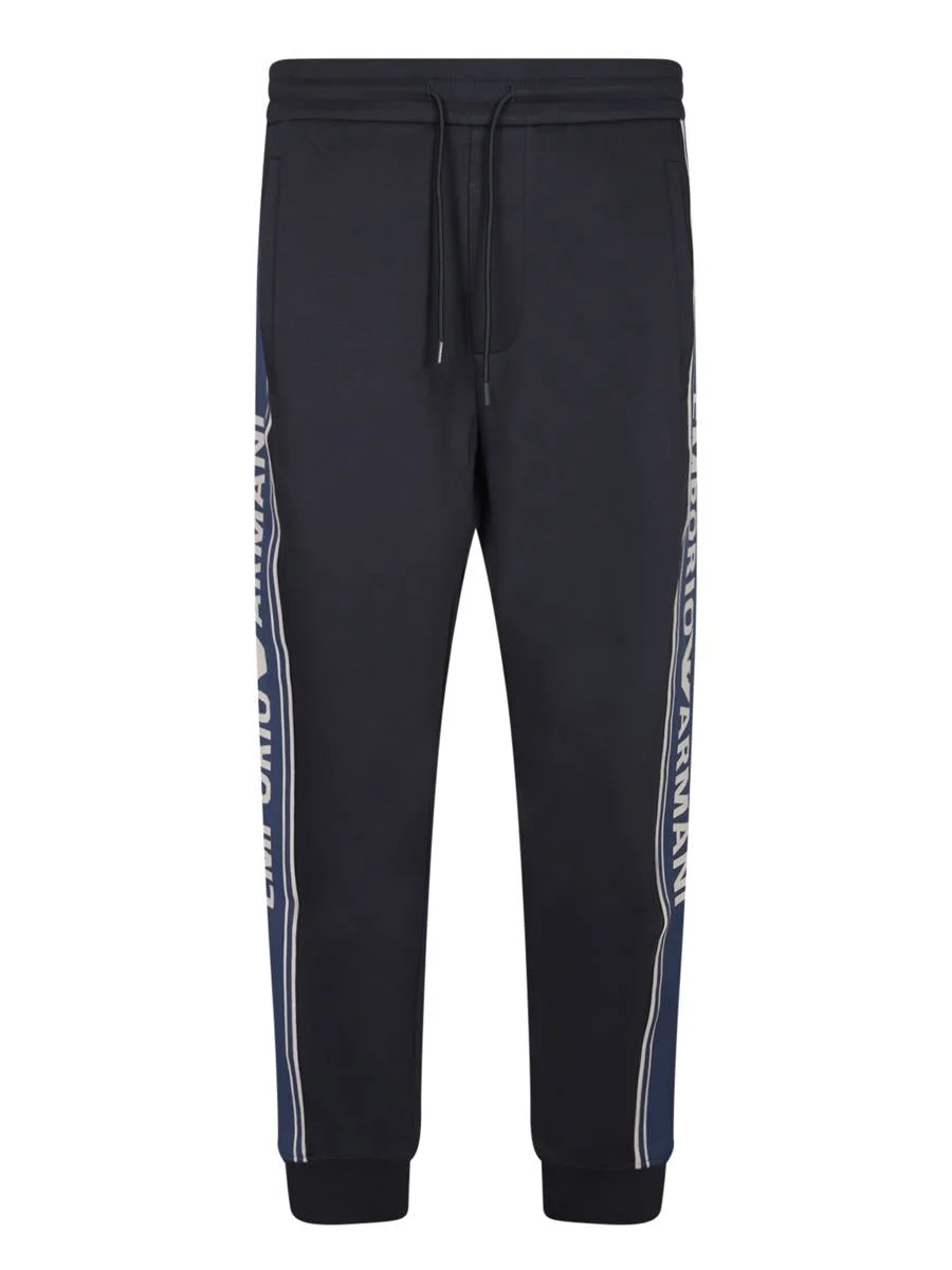 Sweatpants with an elastic waistband, adjustable drawstring, and logo along the leg.. Stylish and comfortable, these Emporio Armani sweatpants are perfect for leisure time. Crafted from high-quality materials, they feature a logo side band that adds a distinctive touch to the classic design Gender: Men Material: COTTON 76% POLYESTER 18% ELASTANE 6% Color: BLUE Made in: Imported Product ID: EM002914 AF10013 UB118 *Import tax/duty will be calculated at checkout (If applicable)