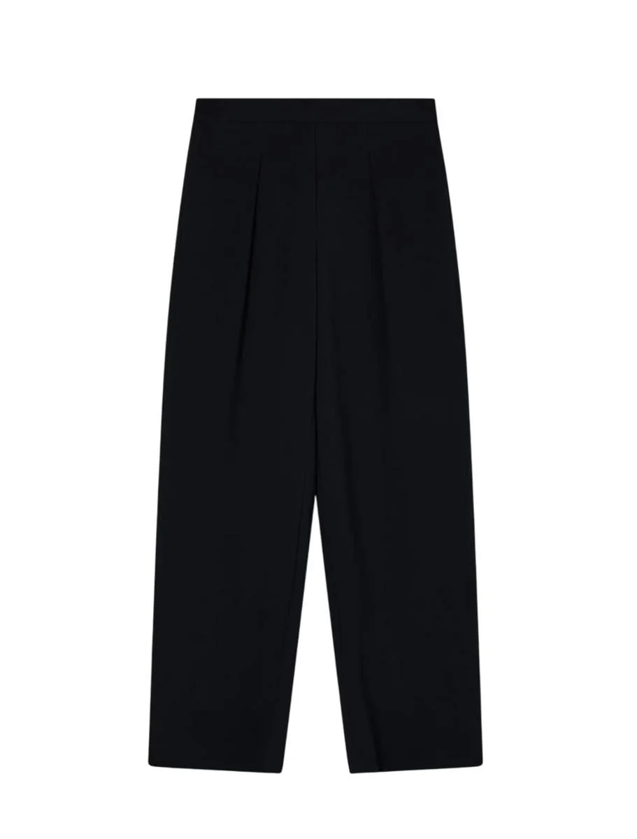 STRETCH SANDBLASTED FABRIC TROUSERS WITH PLEATS