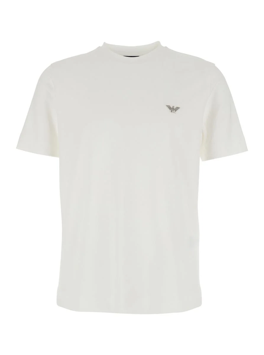 Emporio Armani White Crewneck T-Shirt With Logo Embroidery On The Front In Cotton Man