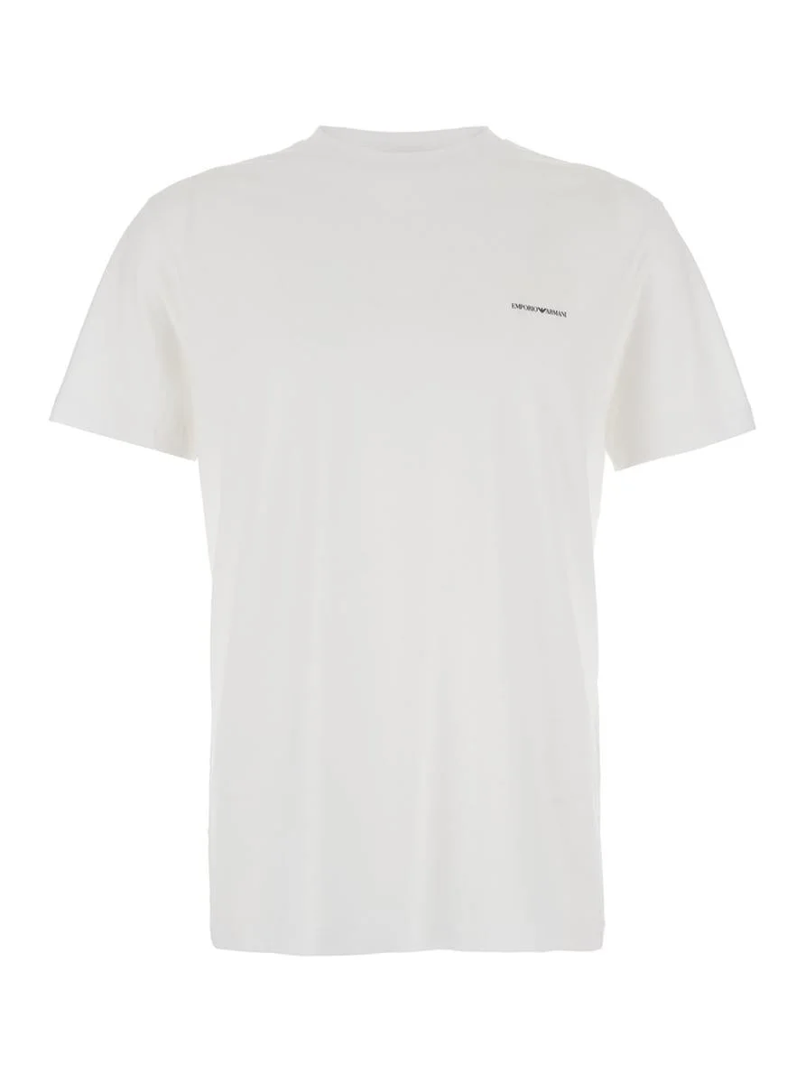 Emporio Armani White T-Shirt With Logo On The Left Front In Cotton Blend Man