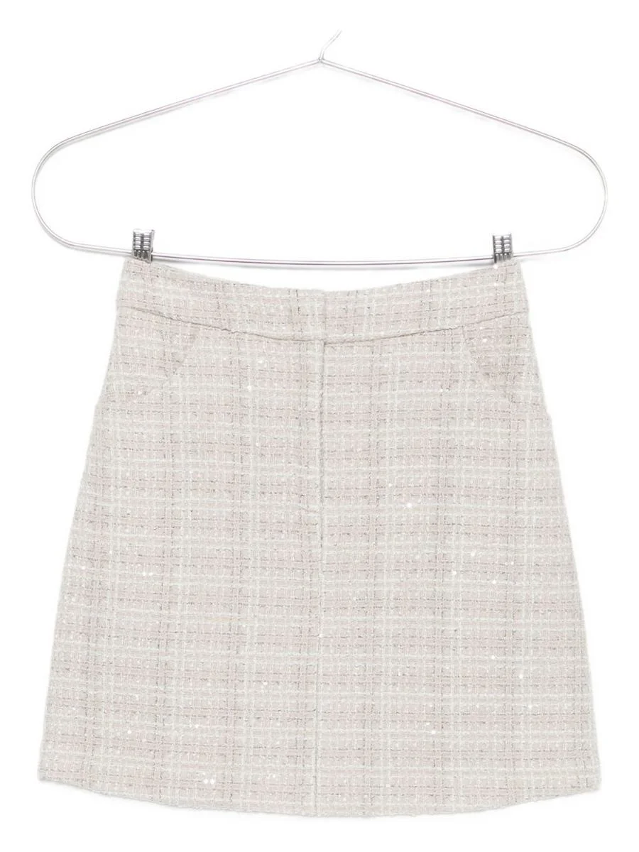 light grey tweed texture check pattern sequin embellishment concealed zip fastening A-line shape Gender: Women Material: OUTER: WOOL 55%, ACRYLIC 27%, POLYESTER 18% Color: GREY Made in: Imported Product ID: EW002275AF14734U8016 *Import tax/duty will be calculated at checkout (If applicable)