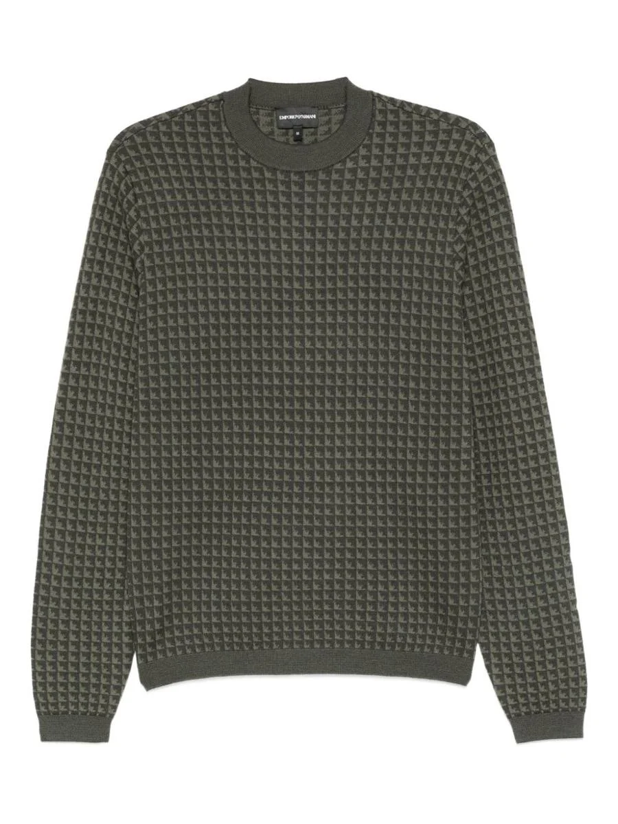 dark olive green virgin wool geometric pattern crew neck long sleeves ribbed cuffs Gender: Men Material: VIRGIN WOOL 100% Color: GREEN Made in: Imported Product ID: EM001989AF14199F8047 *Import tax/duty will be calculated at checkout (If applicable)