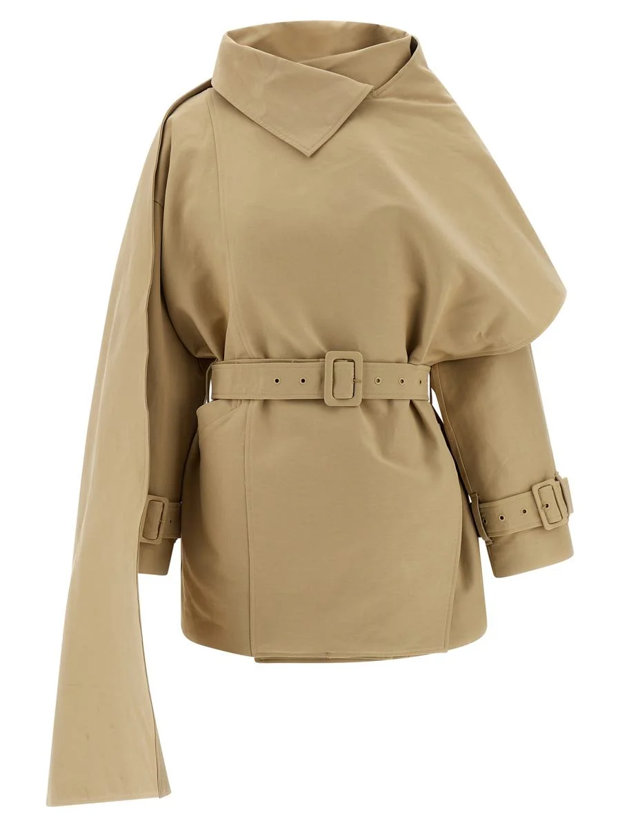 'Mini Scarfcoat' short cotton coat with lining, high neck, concealed front button closure with scarf detail to adjust as desired, cape and vent with back buttons, pockets, long sleeves with adjustable strap, removable belt Gender: Women Material: 100% COTTON Color: Beige Made in: Imported Product ID: ESWW251052SDSD *Import tax/duty will be calculated at checkout (If applicable)