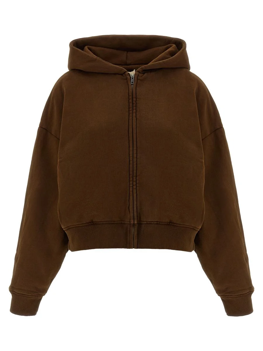 Garment-dyed 510 g/m² brushed cotton 'Thermal' hoodie, waffle knitted cotton lining, front zip closure, pockets, long cuffed sleeves and dropped shoulders. SUSTAINABLE: This product is made of organic cotton Gender: Women Material: 100% COTTON Color: BROWN Made in: Imported Product ID: UNU251004BTBT *Import tax/duty will be calculated at checkout (If applicable)