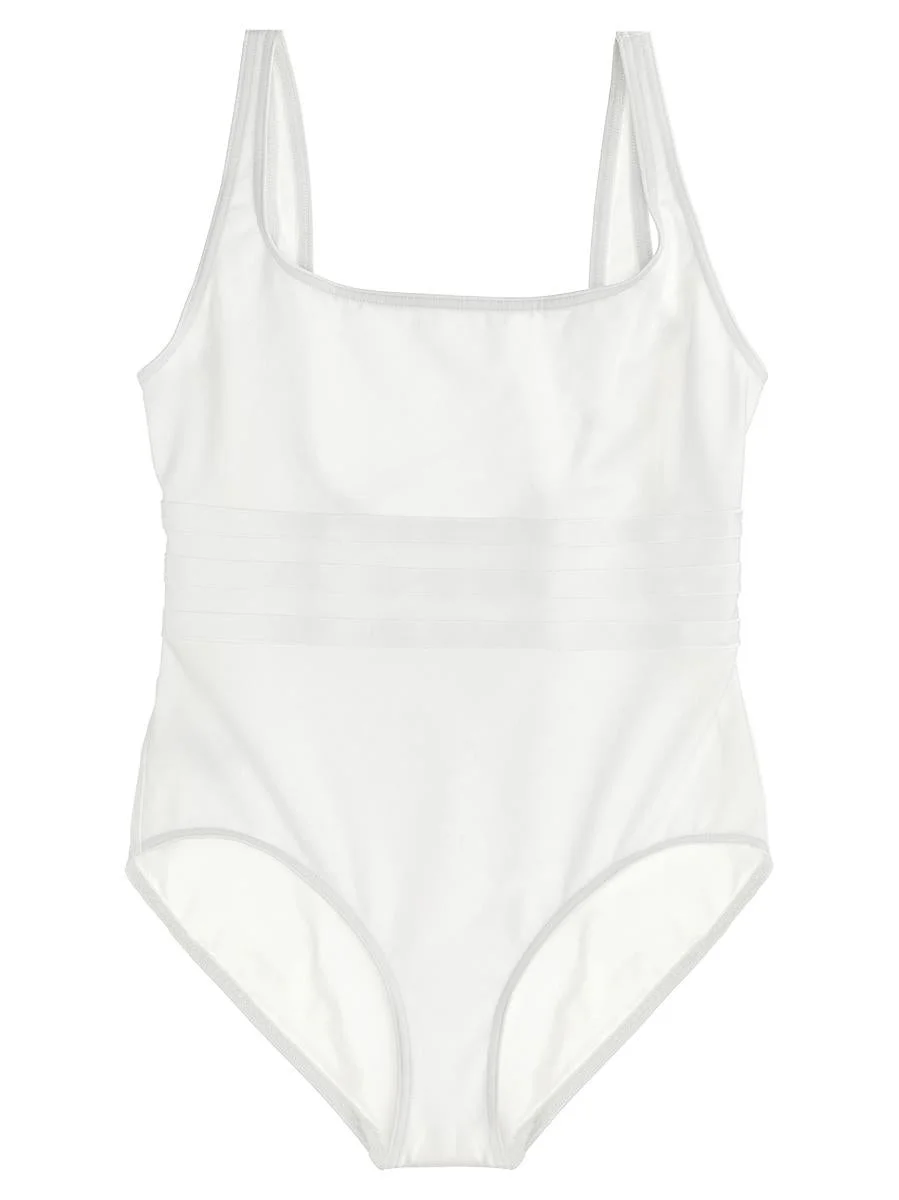 'Asia' one-piece swimsuit in Peau Douce fabric with wide straps and scoop neck, flattering bands at the waist Gender: Women Material: 77% POLYAMIDE, 23% ELASTANE Color: WHITE Made in: IT Product ID: 011401BLANC *Import tax/duty will be calculated at checkout (If applicable)