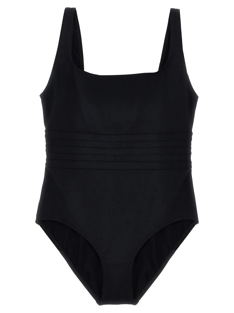 'Asia' one-piece swimsuit in Peau Douce fabric with wide straps and scoop neck, flattering bands at the waist Gender: Women Material: 77% POLYAMIDE, 23% ELASTANE Color: Black Made in: IT Product ID: 011401ULTRA *Import tax/duty will be calculated at checkout (If applicable)